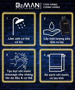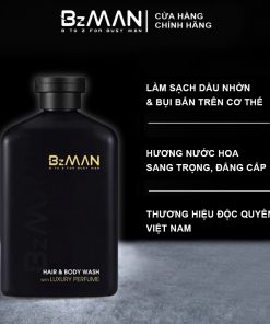 Với thành phần chiết xuất từ thiên nhiên, sữa tắm gội Bzman mang lại cho bạn một trải nghiệm tắm thư giãn và dịu nhẹ. Sản phẩm được chứa đựng trong một chai sang trọng và thiết kế hiện đại, vừa có thể làm quà tặng cho bạn bè, người thân của bạn hoặc tự thưởng cho bản thân.